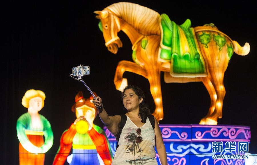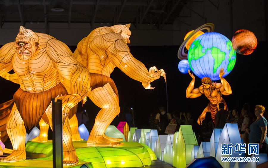 8月18日,在加拿大多伦多,观众在展览会上参观灯展。 2018加拿大国家展览会于8月17日至9月3日在多伦多举行。本届展览会推出以“丝绸之路”为主题的中国灯展,通过17组由中国四川自贡90位匠人制作的大型彩灯,向人们介绍古代“丝绸之路”的神话传说和文化风情。 新华社发(邹峥摄)