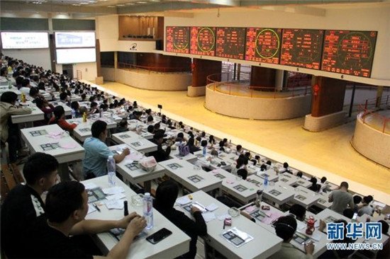 昆明花拍中心,紧张的鲜花拍卖正在进行。新华网念新洪摄