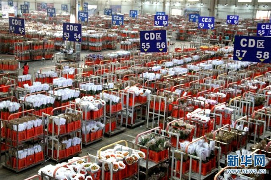 位于斗南的昆明花拍中心交易大厅。新华网念新洪摄