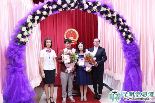 此外,嵩明县民政局还为参加活动的结婚情侣赠送鲜花等精美小礼品。据统计,七夕节这天,嵩明县婚姻登记86对。