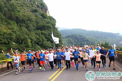 宜良县委常委、县委宣传部长张继帅主持起跑仪式,县委副书记、代理县长刘中政在活动现场向来自全国的跑友推介了宜良,“希望今天的各位跑友,用速度和激情展示宜良的开放和活力,用力量和坚韧体验马拉松的无穷魅力,用拼搏和汗水演绎生命的无限精彩,在青山绿水间跑出好成绩、跑出好心情。”上午8时整,县委书记李绍俊宣布“七彩云南·秘境百马”第95站宜良分站赛事正式开始。