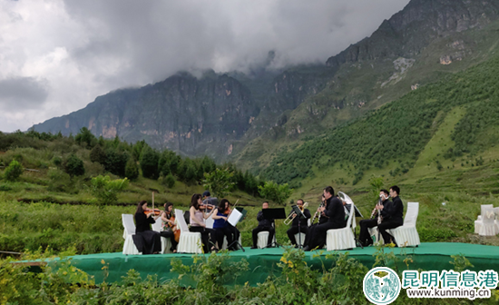 当日,24位交响乐团演员不顾劳累和疲惫(头晚演出到二点)一大早就赶到东川,在李子沟村节基坪小组的洋芋地里,面对牯牛山,为开花洋芋和围观的村民举办了演奏会,是该团首次在田间演出。