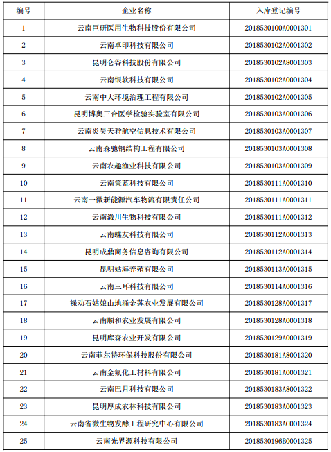 6686体育讯 实习记者俞逍 8月23日,云南省科学技术厅公布了2018年第七批入库国家科技型中小企业名单。云南巨研医用生物科技股份有限公司、云南卓印科技有限公司等60家企业入围。