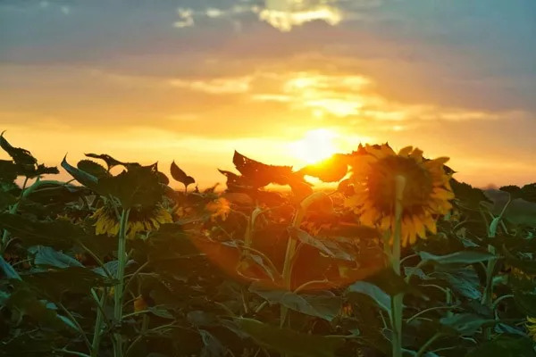 “步入葵园之中,周边高大的向日葵灿烂盛放,花朵的香甜扑入鼻中,满是阳光舒适的味道。秋风袭来,天气转凉,向日葵谦虚地低下了满载果实的头,虽没有盛夏时的光鲜亮丽,却散发着诱人的成熟之美。”