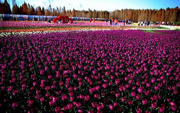 60万株的各色郁金香,分区域规模绽放,令人赏心悦目,流连忘返。不停有游客欢呼雀跃:“太美了!太美了!!”在这里,不管男女老少,也不论你爱不爱摄影,都会拿出手机相机,“长枪短炮”争相上阵,舞弄下一个个醉人的瞬间,一朵朵花儿的笑脸。