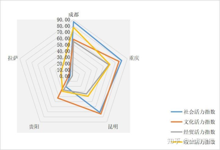 西南五座城市的城市对外交往活力指数(来源:知乎网)
