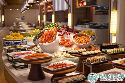 在美食方面,酒店提供如假日厨房、珍府、尊顶等多样且极具特色的餐饮服务。其中全日制餐厅假日厨房,是酒店打造的国际亲子互动餐厅,面积为1000平米,拥有192个室内餐位,户外44个餐位,可同时容纳236位宾客用餐。在这里,客人边观赏玉龙雪山及水秀边想用环球国际美食。针对于儿童,酒店特别为儿童准备了儿童自助餐台,特色儿童菜单等。每天,“酒店魔法师”还会在餐厅内有各式表演和互动活动。
