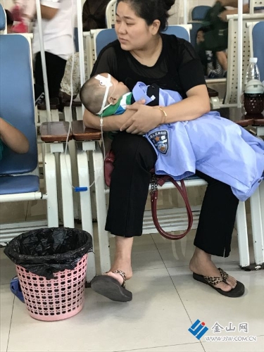 在医院输液室里,一名11个月大的宝宝躺在母亲怀里正在输液,宝宝身上盖着一件警服,年轻的母亲一脸愁容,眼眶通红,应该是刚哭过。这两天,这样一张照片成为上百万网友关注的热点。8月27日,记者进一步了解到了照片背后的感人事。