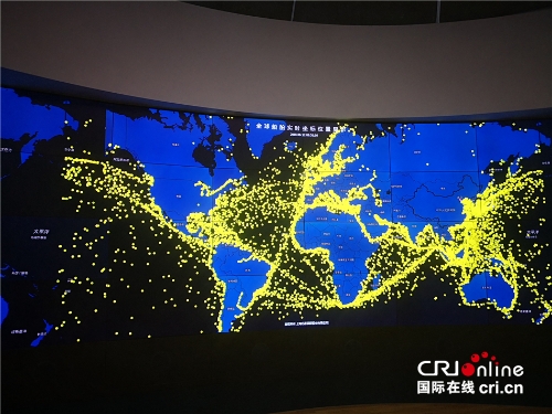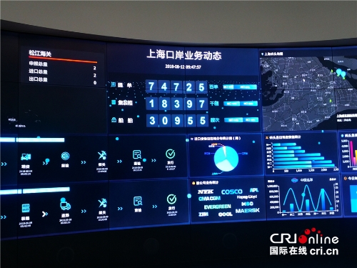 在上海国际贸易单一窗口运营方、上海亿通公司的电子大屏上,密密麻麻的黄色光点显示着全球船舶的实时坐标位置、上海口岸业务动态等关键信息。
