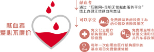 据了解,《昆明市献血条例》将于9月1日正式实施,该《条例》以地方性法规的形式,对荣获国家无偿献血奉献奖和无偿献血志愿服务终身荣誉奖的志愿者,给予“优免补”待遇。统计数据显示,截至2017年12月31日,昆明地区共有3924名献血者达到申请无偿献血荣誉证的条件,这意味着,“互联网+昆明无偿献血服务平台”正式运行后,献血者可通过平台线上办理无偿献血荣誉证,享受到免费游览政府投资主办的公园及旅游风景区、免交公立医疗机构普通门诊诊查费、享受每年一次由用血医疗机构提供的基本项目免费健康体检、免费乘坐城市轨道交通和公共汽车等政策。