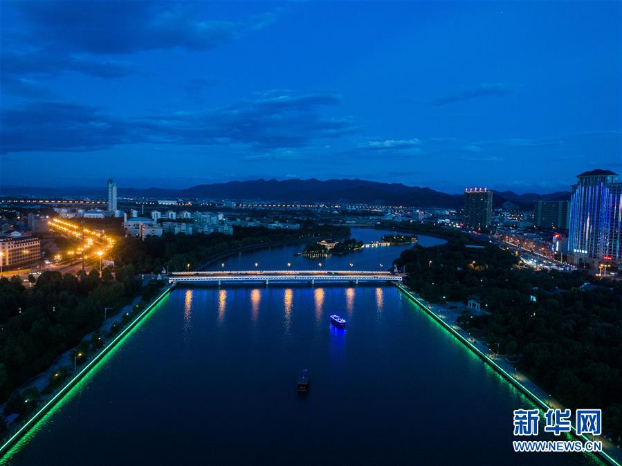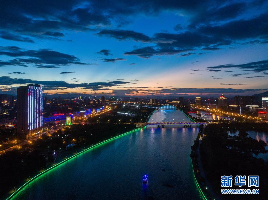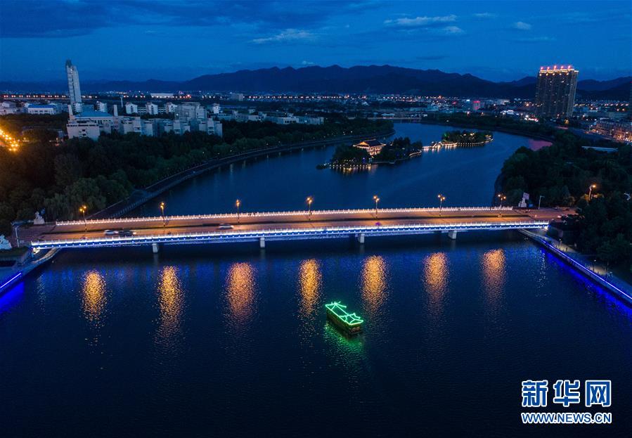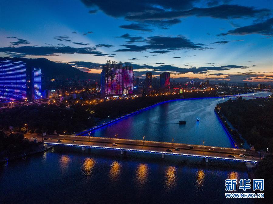 东阳江畔的灯光夜景(无人机拍摄)。新华社记者 徐昱 摄