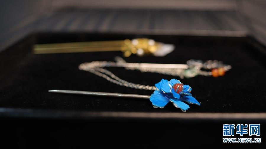 图为昆工学生设计制作的精美首饰,其中用到了珐琅工艺。(新华网 周亚平/摄 念新洪、杨沛林/文)
