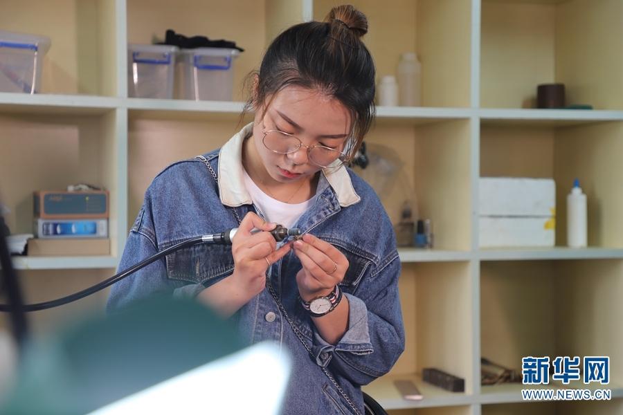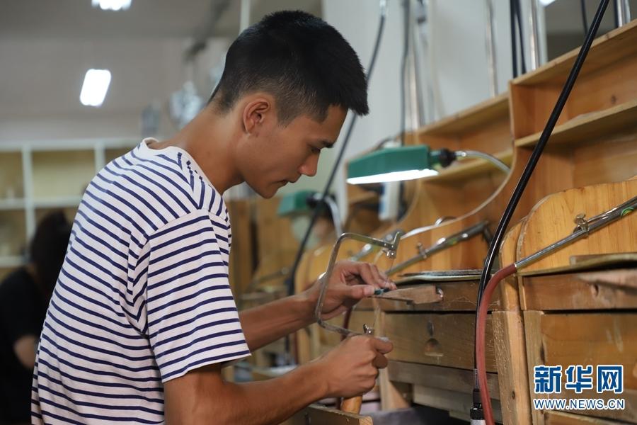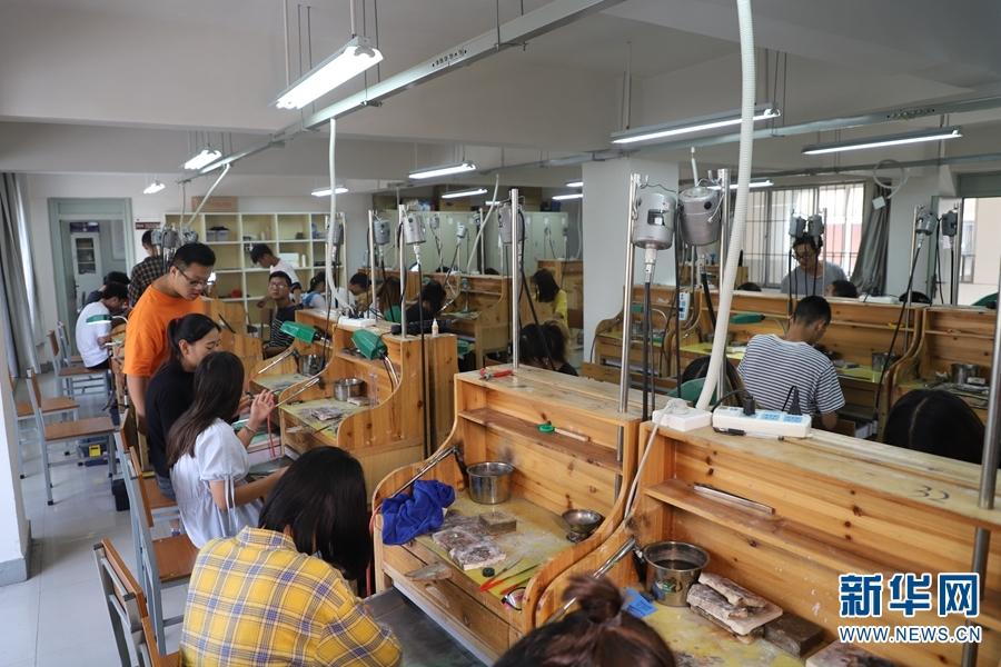 图为昆工学生在实训室的工作台前制作首饰。(新华网 周亚平/摄 念新洪、杨沛林/文)