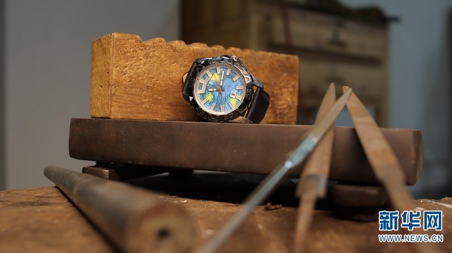 昆明理工大学城市学院青年教师谢俊杰,致力于珐琅工艺的传承和创新,“记载这块的文献非常少,大部分时候是自己摸索着做,曾经失败过上百次!”逐渐掌握制作工艺的谢俊杰,除制作传统首饰外,还创新地将珐琅工艺运用到表盘制作上。图为谢俊杰设计制作的名为“梵誓星空”的表盘。(新华网 周亚平/摄 念新洪、杨沛林/文)