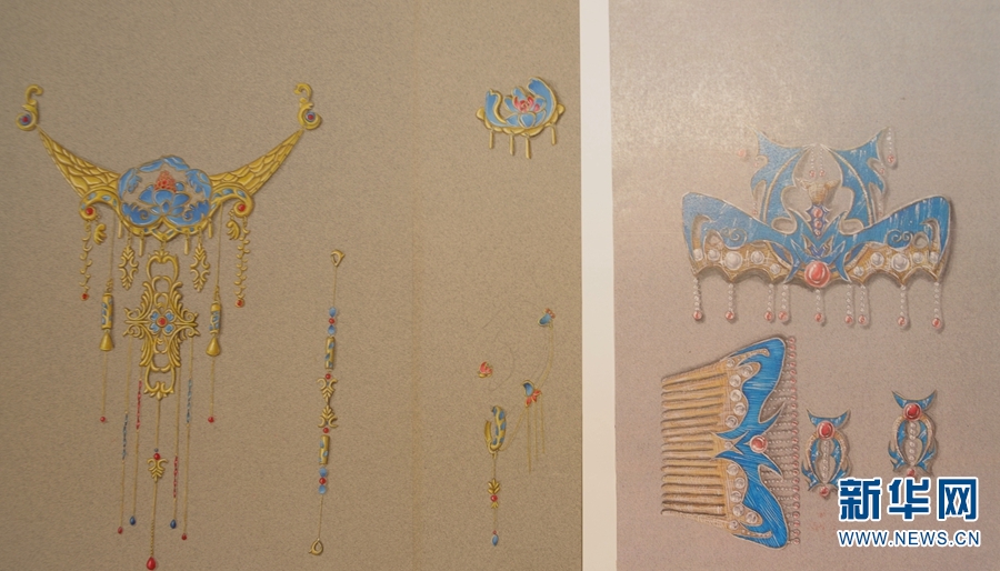 图为昆工学生手绘的设计图,浓浓的古典气息跃然纸上。(新华网 周亚平/摄 念新洪、杨沛林/文)