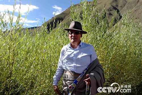 昂江多杰介绍基地藏柳的培育情况。(王小英/摄)