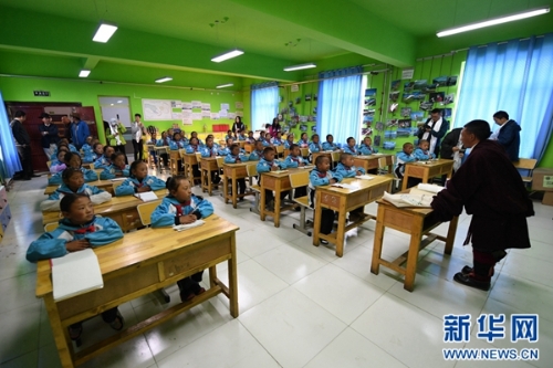 吉尕小学生态教育示范课教室。新华网 潘彬彬摄