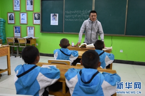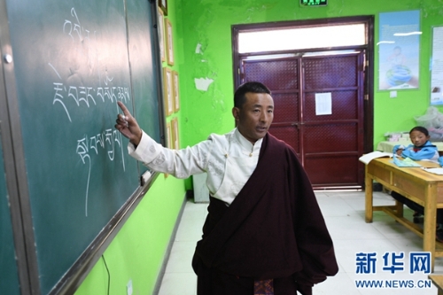 闹布智美在给学生们上课。新华网 潘彬彬摄