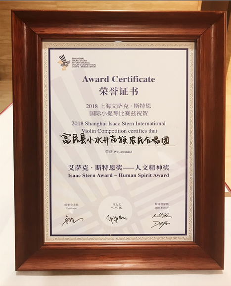“艾萨克·斯特恩奖——人文精神奖”荣誉证书 供图