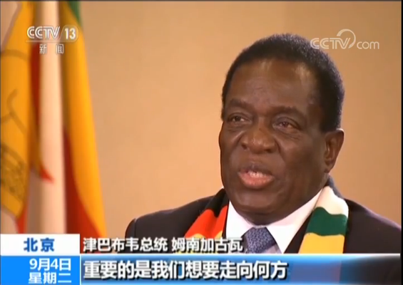 津巴布韦总统 姆南加古瓦:“一带一路”倡议涉及到了各方,我们各个经济体之间,可以互相沟通,可以互相帮助。