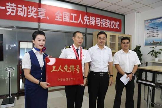 9月4日下午,省总工会代中华全国总工会在四川航空公司举行全国五一劳动奖章、全国工人先锋号授奖仪式,为今年5月14日成功处置险情的川航3U8633航班机长刘传健及机组授奖。