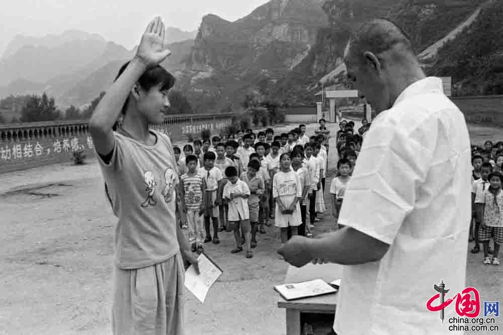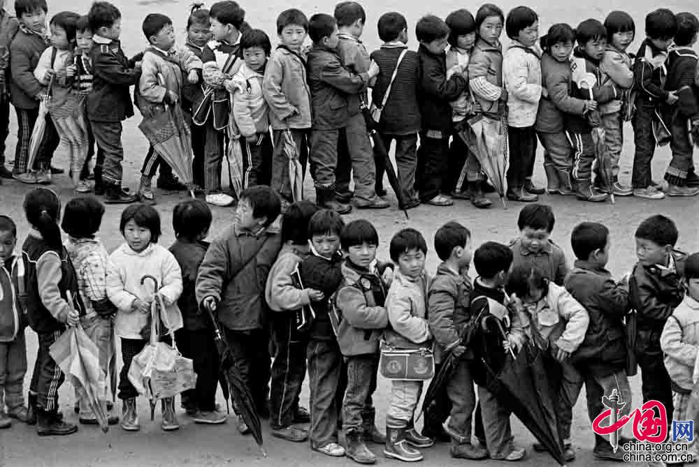 1991年4月,安徽省金寨县南溪镇查畈村,我国每年有100万像张天翼(小光头 7岁)一样聪明可爱的孩子因贫困而失学 ,“我想上学”是他们共同的愿望。