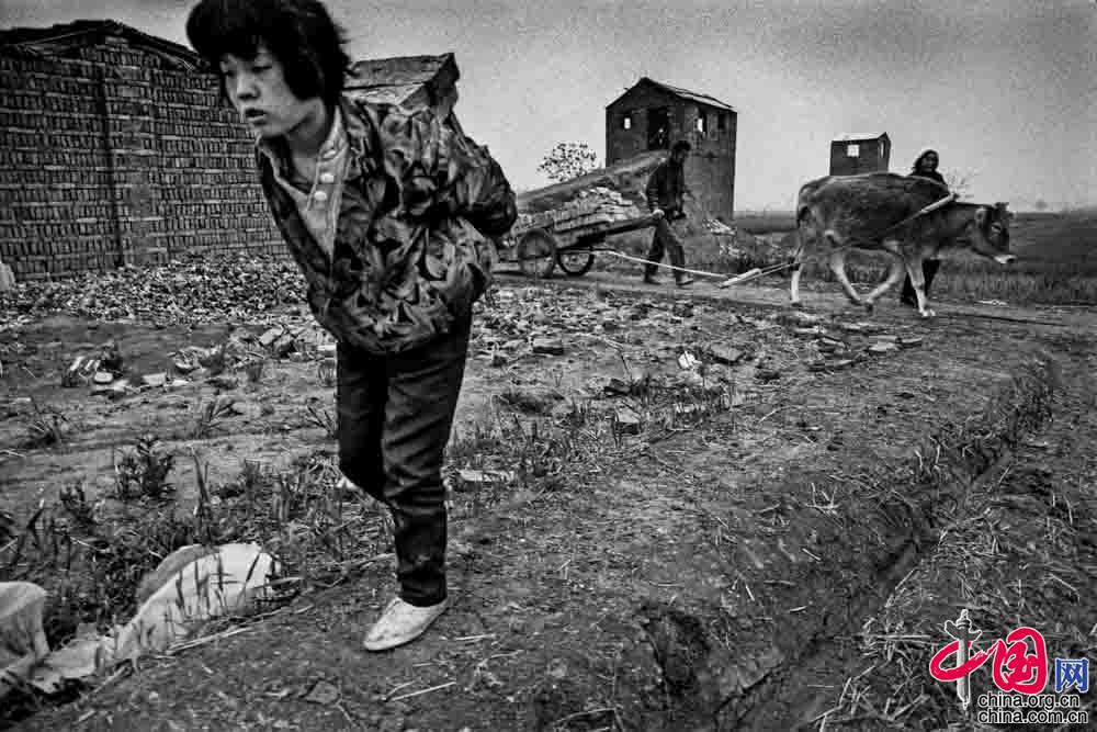 1994年4月, 安徽省临泉县城关镇刘老庙村 ,刘小环(11岁)为了能上学 ,去窑厂背砖坯。