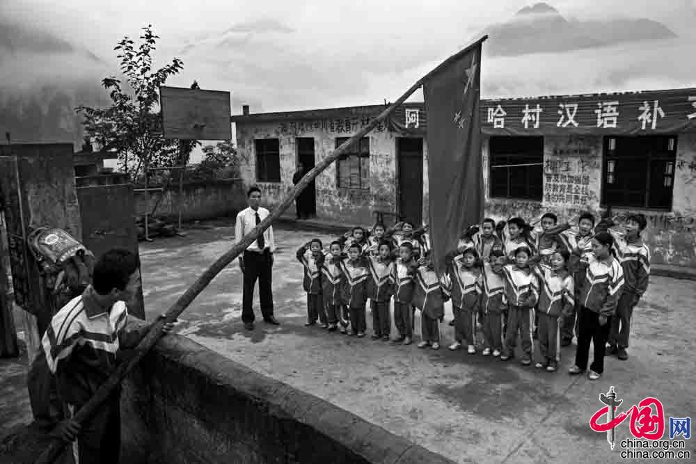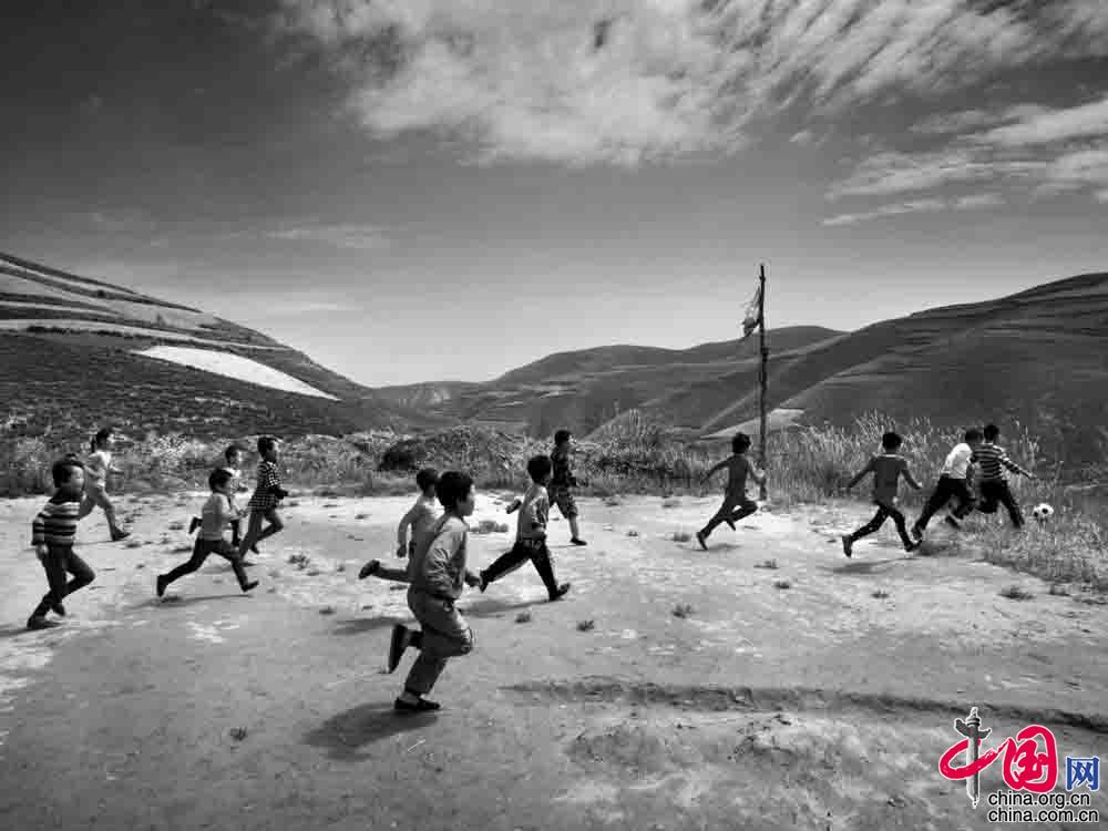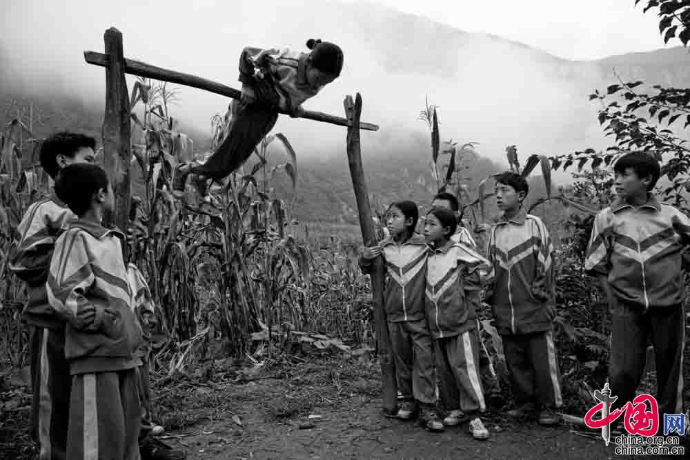 2006年9月 ,四川省布拖县阿布洛哈村, 虽然体育设施很简陋, 但是孩子们依然玩的兴致高昂。