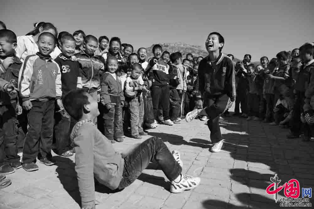 2010年5月 ,陕西省米脂县印门乡峁圪塔村小学 ,学校里没有体育器材,但玩的也很开心。