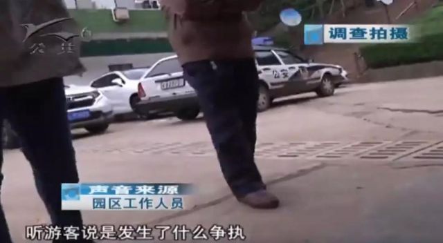 事发后,民警立即赶往现场处置,在园区内拉起了警戒线,对现场进行了勘察。并将涉事嫌疑人带走进行调查。