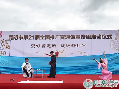 6686体育讯 记者上官艳君 9月11日,以“说好普通话,迈进新时代”为主题的昆明市第21届全国普通话宣传启动仪式在洛龙湖公园广场举行,旨在大力推广和规范使用国家通用语言文字。