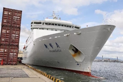 本次护送滞留旅客安全回家的客轮是中日国际轮渡有限公司的“新鉴真”号。