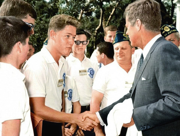 克林顿天生是个学霸,青年时期就以杰出学生之名受到过时任总统肯尼迪(右)接见。