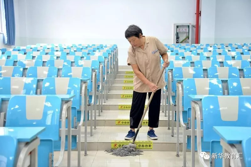马经理说,清洁岗位要求工作人员每天早上六点多到校,下午四点离开学校,中途一直要待在学校。工资不高,工作很累,但是他们毫无怨言,工作从来不推诿。