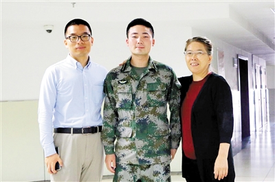 侯阿姨(右一)专程到重庆感谢王明亮(中)。 陆军军医大学供图