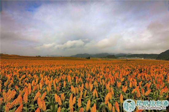 七彩花田。七彩花田位于罗平县金鸡峰丛景区内。2018年罗平金鸡峰丛栽种连片红高粱、向日葵、孔雀草、鸡冠花、百日草、波斯菊、鲁冰花等3000亩七彩花田目前长势喜人,各种花卉竞相开放,金鸡峰丛已经成为大地的调色板,蔚为壮观,吸引众多旅游爱好者前来赏花旅游。