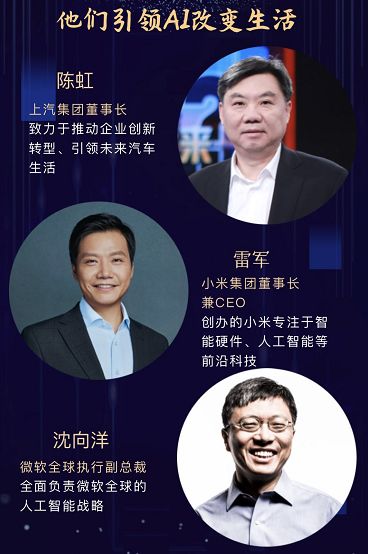在高峰论坛环节,除马云、马化腾、李彦宏、雷军等上述企业家外,出席者还包括微软全球执行副总裁、微软人工智能及微软研究事业部负责人沈向洋,华为轮值董事长徐直军,谷歌全球副总裁、工程研究院Jay Yagnik,亚马逊AWS副总裁 Swami Sivasubramanian,科大讯飞董事长刘庆峰,商汤科技创始人、香港中文大学教授汤晓鸥。