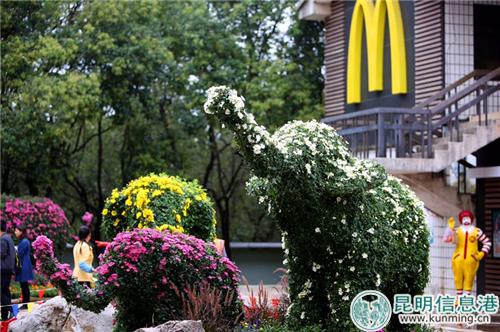 今年菊展,首次采用集中展示的方式,在昆明动物园中心区樱花广场区域设计主题景点5组,展出大型艺菊造型及罕见的菊花品种,摆放各色花卉2万盆,通过富有层次、韵律变化的景点布局,充分展示菊花技艺、造景艺术和浓郁的赏菊文化,呈现给市民和游客一场别出心裁的“菊茂献瑞、秋景满园、喜庆祥和”的菊花盛宴。