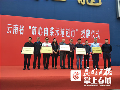 6686体育讯(昆明日报 记者徐婕)9月20日上午10时,由云南省食安办、省食品药品监管局在昆明市盘龙区北京路麦德龙商场为昆明七沛兔商贸有限公司华联超市、 云南华润万家生活超市有限公司昆明前兴店、昆明格润购商贸有限公司格润超市、云南润泰商业有限公司大润发超市昆明官南店、锦江麦德龙现购自运有限公司昆明北辰商场5家超市举行省级“放心肉菜示范超市”授牌仪式。