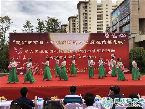 6686体育讯 记者龙泉积 9月20日,中秋将至,官渡区矣六街道花田社区举办“我们的节日·中秋团圆暖人心·爱在俊福花城·首届文化艺术节——建设者之歌文艺演出。据介绍,此次活动旨在加强居民与辖区公共单位互通共融,促进居民之间心与心的交流,提升社区居民“主人翁”意识,把社区建设成为文明、和谐、美丽社区共奋进。