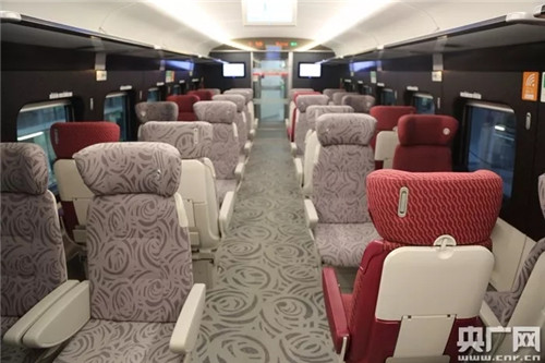 颜色多样的座椅让列车充满时尚气息(央广网记者 张磊 摄)