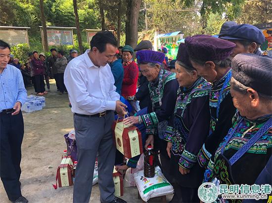 现场,在董事长杨学银的带领下,工作人员将米、油和月饼等送至陡坡村村民手中,为他们送上节日的祝福,提着沉甸甸的中秋福利,村民们脸上乐开了花。与此同时,工作人员还分别前往昆明市五华区西翥办事处沙朗大村村委会及嵩明县杨林镇云林村,将大米、食用油、月饼分发到每个村民的手中。