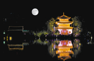 9月24日,农历八月十五,我国迎来一年一度的中秋节。月到中秋分外明,这一团圆夜历来有赏月传统。昆明大观楼是与岳阳楼、黄鹤楼等齐名的中国名楼,国家4A级旅游景区,是中秋节赏月的好去处。昨日,市民纷纷到大观楼赏月,并参加大观公园举办的中秋晚会活动。