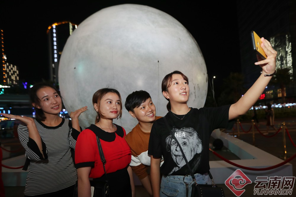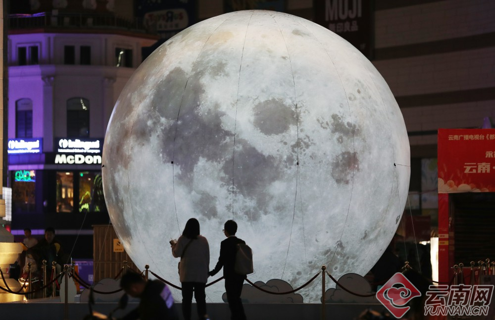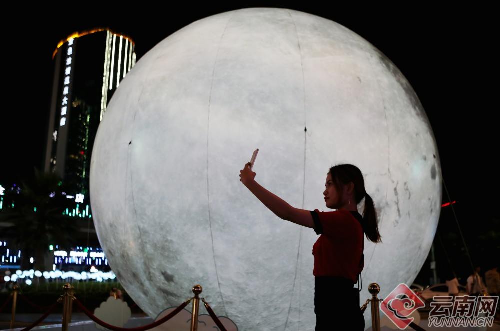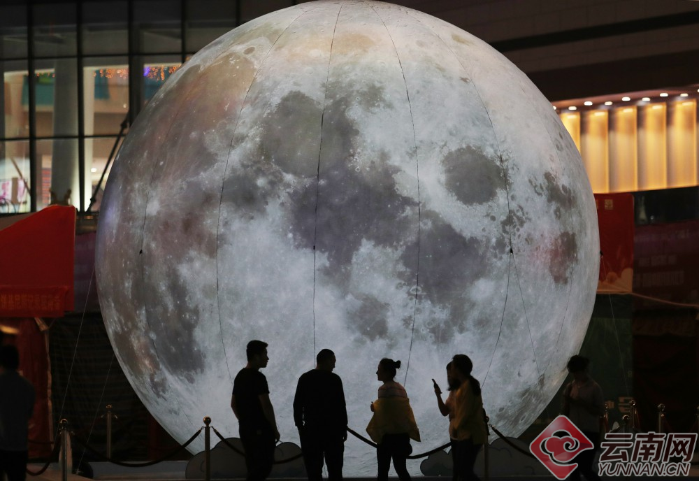 9月24日,一只直径超过5米的超级“月亮”成为昆明南亚第一城商业区广场上靓丽的中秋景致,营造了独特的中秋夜景,也吸引了众多市民驻足观赏和拍照留影。云南网记者 杨峥 李秋明/摄