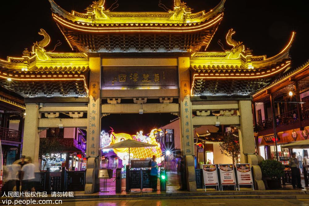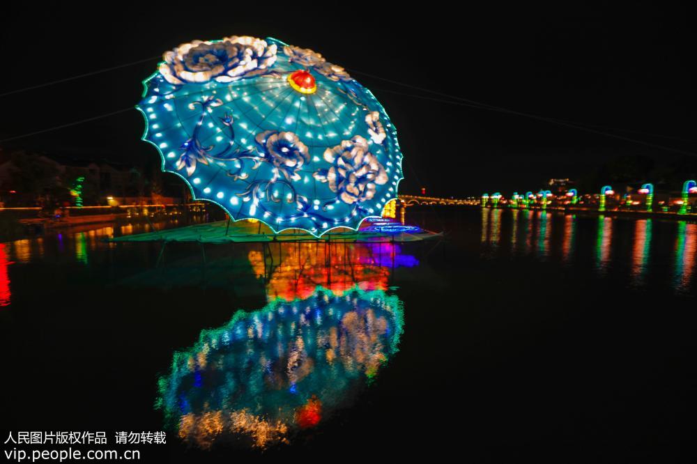 9月25日晚上,正在江苏苏州周庄举办的2018海峡两岸(昆山)中秋灯会流光溢彩、美轮美奂。韩加君/人民图片