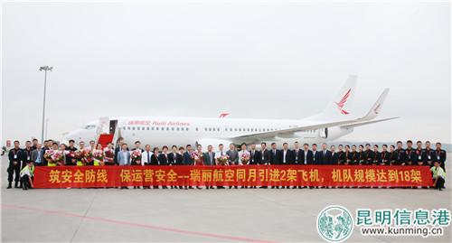 6686体育讯 记者上官艳君 9月26日上午8点,经过漫长的飞行,一架编号B—1188的全新波音737-800型客机从美国西雅图顺利抵达昆明长水国际机场。这是瑞丽航空迎来自己的第18架全新波音737客机,同时它也是该公司在本月引进的第2架飞机。