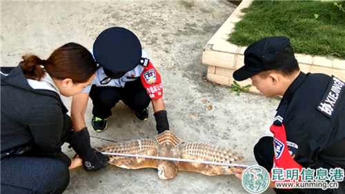 民警赶到现场后,这只猴面鹰正蹲在卫生间马桶上,或许被李女士一家打扰没能“赏月”,它显得无精打采。在抓捕的过程中,猴面鹰受到惊吓奋力反抗,还将民警的手抓伤。经检测,其体长36CM,展翼长96CM,重400克,未发现有外伤,民警将它带到野外放归了自然。