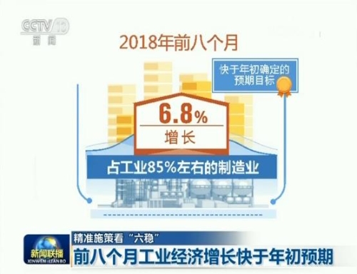 今年前八个月,我国规模以上工业增加值增长6.5%,特别是占工业85%左右的制造业,增长了6.8%,快于年初确定的预期目标。制造业的投资比去年同期增长了7.5%,是2016年3月份以来最高增速。