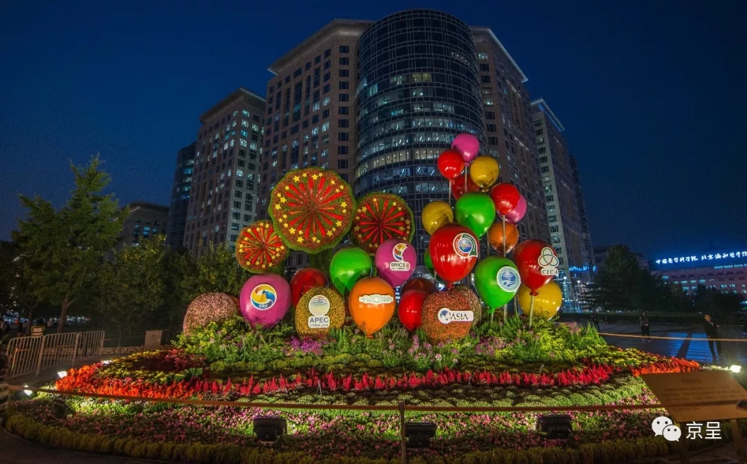 “开放中国”主题花坛。花坛通过展示我国举办及参与的重大国际活动(一带一路、中非合作论坛、上合组织峰会等),让更多中国理念、中国方案得到世界广泛认同。