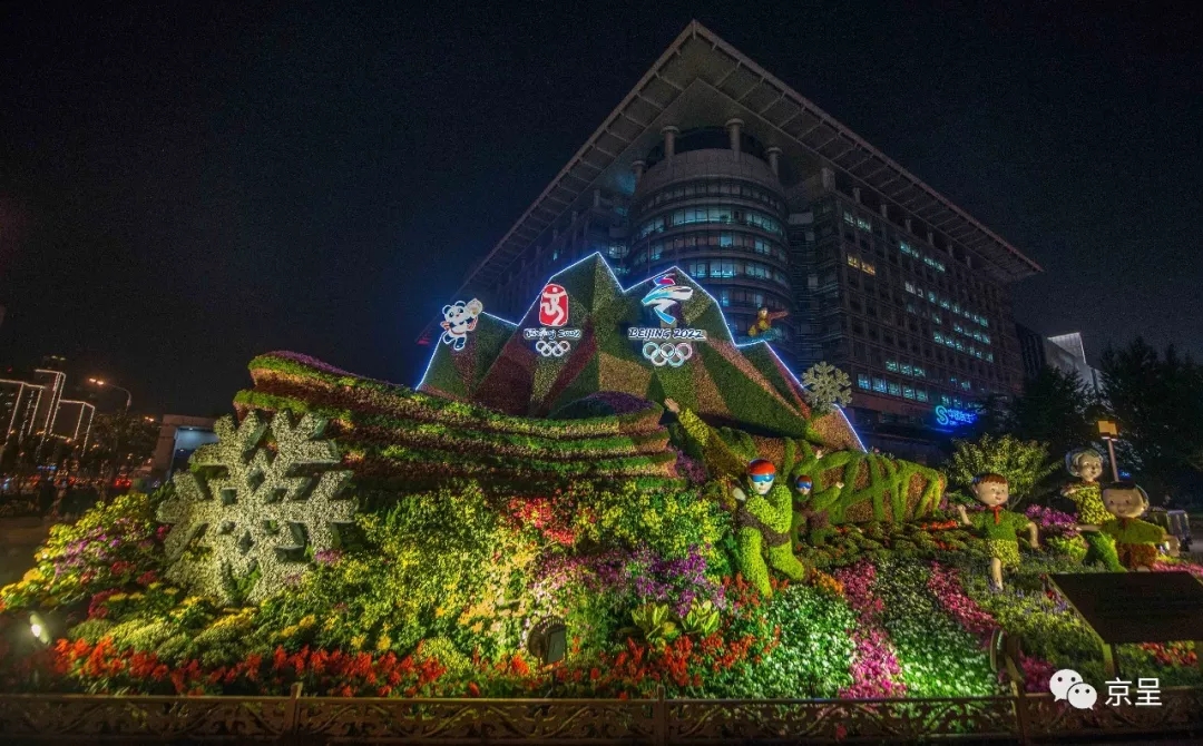 “健康生活”主题花坛。花坛以全民健身运动为场景,通过回顾亚运会、奥运会并展望冬奥会,体现了我国在提高人民健康水平领域取得的巨大成就和成功经验。